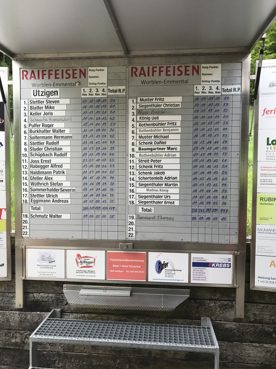 Im zweiten Schlagumgang musste die Heimmannschaft viele Fehlsteiche unter der Marke zehn schrieben lassen, so gelang kein anknüpfen an den ersten Umgang. Sie schlossen mit Riesen von 184 und 174 Punkten ab. Die Gäste hatten wegen den vielen Fehlstreichen der Utziger durchs ganze Ries Arbeit, konnten aber bis am Schluss alle Nousse abwehren.