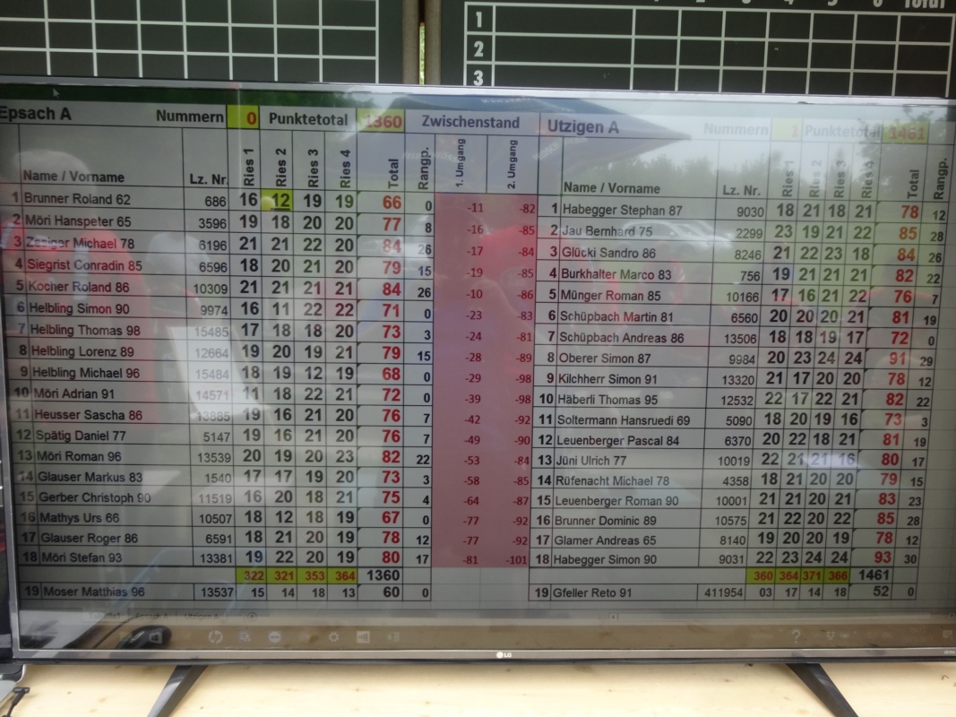 Im zweiten Umgang lieferte die Heimmannschaft eine sehr gute Schlagleistung und forderte die Utziger im Ries erneut. Dank einer geschlossenen Teamleistung und viel Einsatz konnten aber alle Nousse abgewehrt werden. Die HG Epsach steigerte sich und schloss den zweiten Umgang mit Riesen von 353 und 364 ab. Damit totalisierte die HG Epsach 1360 Schlagpunkte. Nun galt es für das Team Utzigen A unter der Leitung von Dominic Brunner, die Motivation aufrecht zu erhalten um mit einer top Schlagleistung mindestens noch ein Rangpunkt gewinnen zu können. Mit Riesen von 371 und 366 konnte dieser Vorsatz umgesetzt werden.