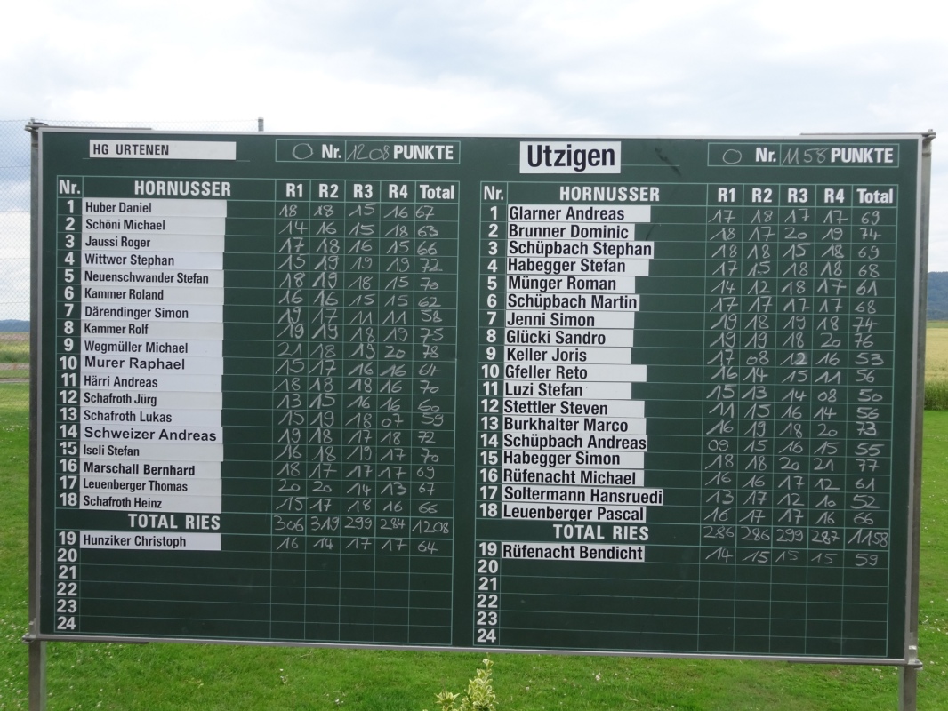 Die Hornusser Utzigen konnten Heute erneut nicht ihr Potenzial abrufen. Bereits im ersten Umgang lagen die Utziger mit 53 Punkten im Rückstand. Urtenen A zeigte über das gesamte Spiel einen souveränen Auftritt am Bock wie im Ries.