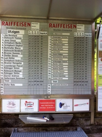 Zur Halbzeit lag Biglen-Arni mit 20pkt. in Führung. Die Utziger steigerten sich nochmals im zweiten Umgang und schlugen für ihre Verhältnisse sehr gute 704 Punkte. Somit war Biglen-Arni nochmals gefordert um mindestens noch einen Rangpunkt zu gewinnen. Durch das Schlussresultat von 1371 Punkten zu 1374 Punkten gelang es Biglen-Arni noch knapp.