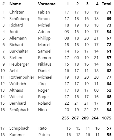 Wir gratulieren unseren Einzelschlägern zur sehr guten Rangierung.