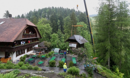 Auch anderswo hinterlässt der Spycher, der neben dem Haupthaus des Hotels und dem Stöckli an die Gartenterrasse grenzte, Lücken: «Jeden Morgen haben wir beim Frühstück vor dem Fenster unseren Spycher gesehen, und das 40 Jahre lang», sagt Marlis Mosimann und hält den Moment mit einer Kamera fest. Jakob Mosimann, zusammen mit Ehefrau Marlis Wirt des Hotels, möchte den Spycher wieder in der Nähe des alten Standortes aufbauen: «Es wird aber mehr als ein Jahr dauern, bis wir einen geeigneten Ort gefunden haben.» Bis dahin wird der Spycher 200 Meter weiter südlich auf einem Kiesplatz zwischengelagert. Weil auch beim benachbarten Hag-Haus der Hang rutscht, müssen sich Marlis und Jakob Mosimann zudem um den Bau einer weiteren Stützmauer kümmern. Wie hoch die Kosten sein werden und wie viel davon die Gebäudeversicherung übernimmt, ist noch unklar.