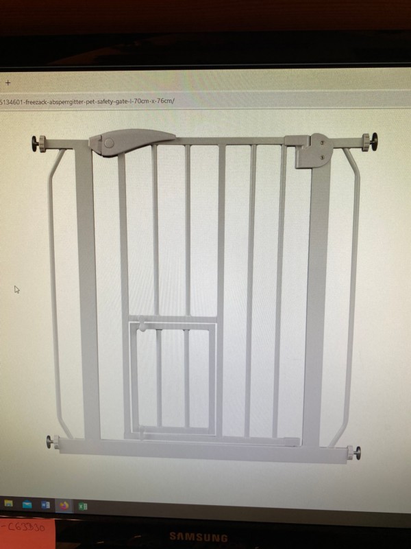 Das Freezack Absperrgitter Pet Safety Gate L 75-84cm x 76cm ist eine Gitterabschrankung, welche Sie in Türen oder Durchgängen einspannen können. Die Schwenktüre des Absperrgitters ist auf beide Seiten schwenkbar. Das Freezack Absperrgitter Pet Safety Gate verfügt über einen Sicherheitsverschluss der mit einer Hand geöffnet werden kann. Zusätzlich hat das Freezack Absperrgitter Pet Safety Gate ein kleines Türchen, welches Katzen und kleinen Hunden den Durchgang ermöglicht. So können Sie und kleine Tiere passieren, während Kinder oder grosse Hunde keinen Zugang haben. Das Absperrgitter kann mit zusätzlichen Elementen erweitert werden. Die Gitterabstände betragen ca. 6-6.5cm.