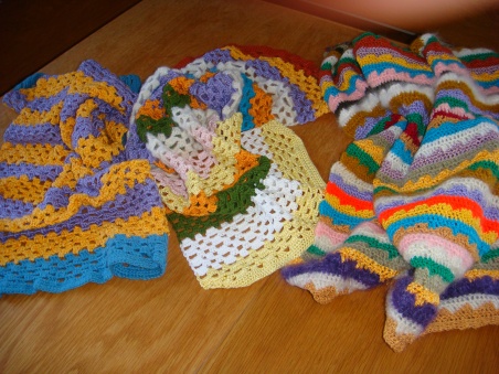 Farbige, gehäkelte, warme Decken, aus Wolle und Garn. In verschiedenen Grössen. Für Kinderwagen oder Kinderbettli......