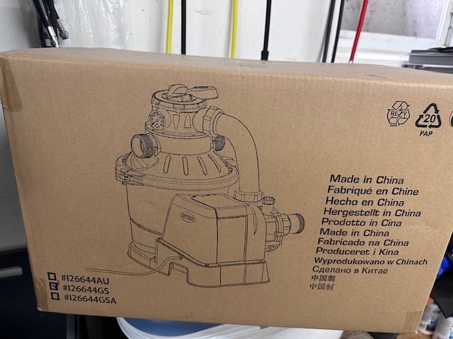 Neue, unbenutzte Sandfilteranlage. War bei einem 20'000 Liter Pool dabei, brauche sie aber nicht. Infos oder technische Daten habe ich nicht, aber unter #126644GS finden sich Infos.