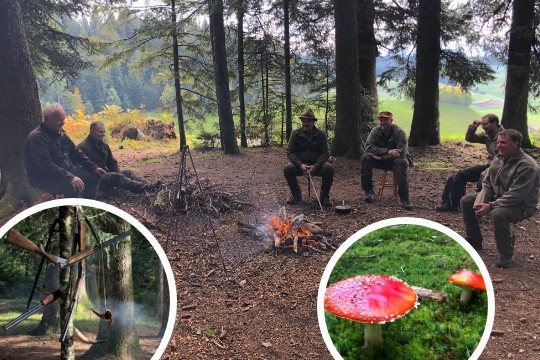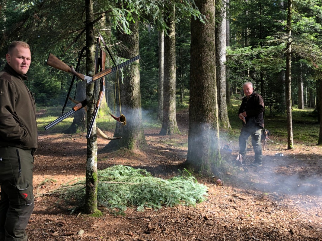 Anders als der Begriff „Treibjagd“ vermuten lässt, ist die Rehjagd eine unaufgeregte Angelegenheit. Zwar tun die Hunde ihre Arbeit und durchkämmen das Dickicht. Sie tun das aber eher gemütlich und hängen nicht geifernd in der Leine, bis sie abgelassen werden. Auch die Jäger finden Zeit und Musse zum Plaudern, Pilze ansehen und die frische Waldluft geniessen. Zwischen den "Treiben" trinkt man im „Basislager“ bei der Feuerstelle ein Tee oder raucht eine Zigarette. Dreimal ging man los an diesem Tag, Schüsse fielen keine. Ein schöner Bock zeigte sich, in Schussnähe gar, verschwand aber zu schnell und in die falsche Richtung, um geschossen zu werden.