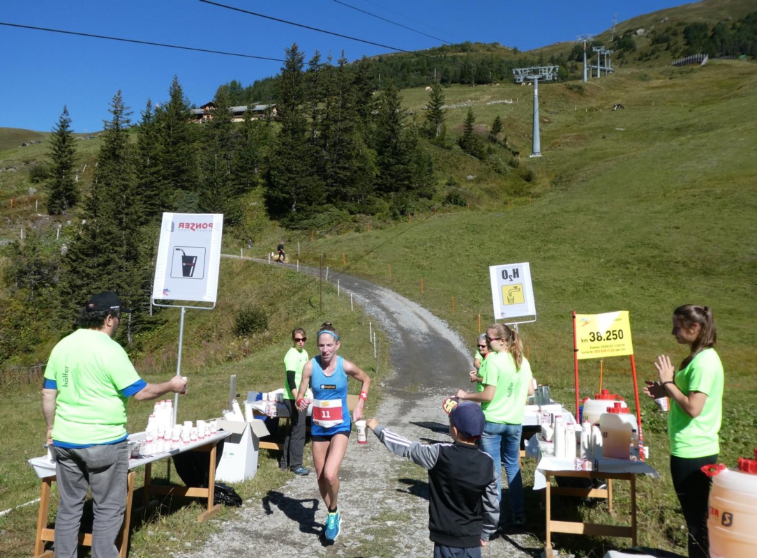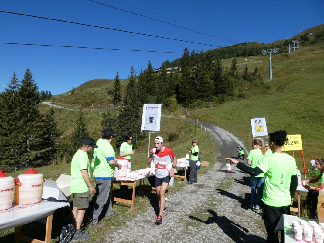 Ein Teil der insgesamt 105’000 Becher, 14'000 Liter Getränke und 4’500 Bananen wurden sorgfältig bereitgestellt um anschliessend den Läuferinnen und Läufern abzugeben. Nicht nur der schottische Sieger Robbie Simpson und die Siegerin Martina Strähl, die mehrfache Europa- und Weltmeisterin im Berglauf aus Horriwil (SO), die ihren Sieg von 2016 wiederholen konnte, genossen die Konolfinger Verpflegung.