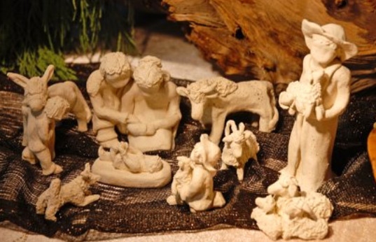 Ein Junge umarmt ein Eselchen, ein Schäfer hat ein Lämmchen auf dem Schoss, das Christuskind streckt keck ein Beinchen in die Luft – die Figuren der Künstlerin kommen durch ihre Körpersprache lebendig daher und ohne Gesichter aus. «Es braucht so wenig dafür, etwas auszudrücken», versichert Leuthold. Die Liebe zu Tieren findet sich in vielen Arrangements.