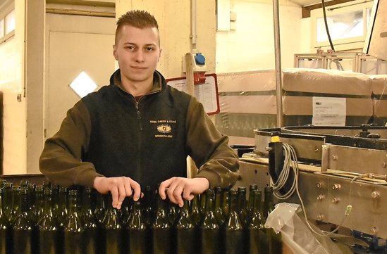 Auch im Abschlussjahr seiner Lehre als Weintechnologe ist das Abfüllen indes ein steter Begleiter für Hess. «Wir füllen jede Woche montags und dienstags Wein ab – ausser über Weihnachten und während dreier Wochen im Sommer», erklärt er. Stehen die grossen 7,5-dl oder 1-Liter-Flaschen an, sind es mehr als 1200 Flaschen pro Stunde, bei den beliebten Halbliterflaschen liegen schon mal 14 000 Flaschen am Tag drin. «Es kommt immer drauf an, wie wir vorwärtskommen», sagt Hess. Schiefgehen könne einiges, betont er. «Die Anlage ist komplex, und wenn die Flaschen schmal und hoch sind, kann es schon passieren, dass sie kippen und sich verkeilen.»