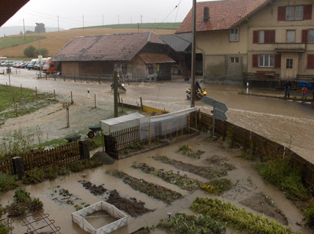 Die Kantonspolizei schreibt: "So traten in Kiesen, Brenzikofen, Walkringen, Langnau, Rüeggisberg und Mühlethurnen Bäche über die Ufer. Die Feuerwehren in den betroffenen Gebieten wurden aufgeboten und stehen im Grosseinsatz."