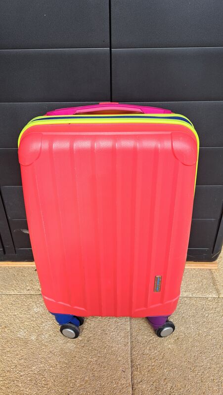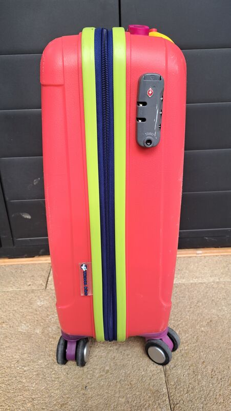 Rot-farbiger Rollkoffer von Travel Kids. Verschluss mit oder ohne Zahlenkombination.
