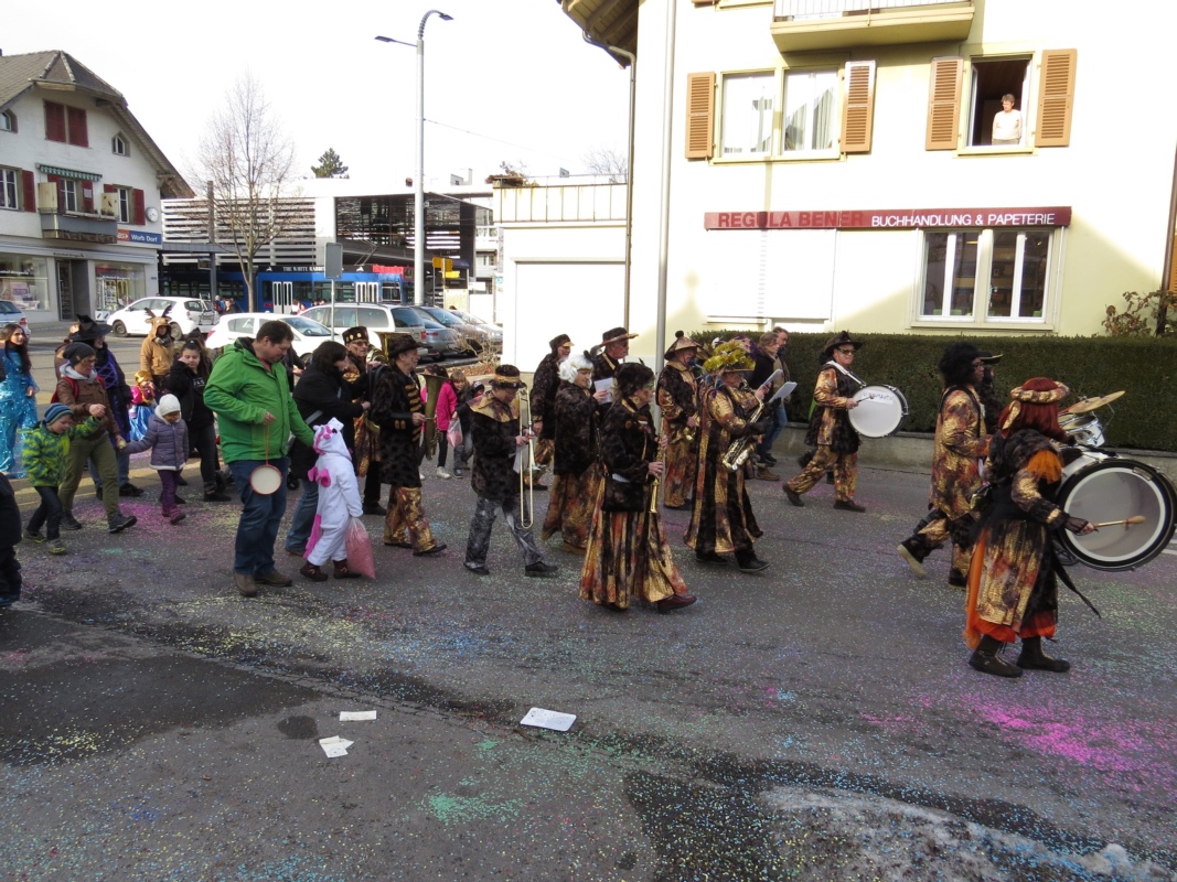 Bei unerwartet schönem Wetter ging letzten Samstag, 11. Februar, die alljährliche Kinderfasnacht über die Bühne. Rund 500 Besucher feierten mit den drei Guggenmusik-Gruppen "SpitzeBlaatere", "Goldiguuger" und den einheimischen "Guggomanen" auf dem Bärenplatz und im Bärensaal eine rauschende Kinderfasnachts-Party.