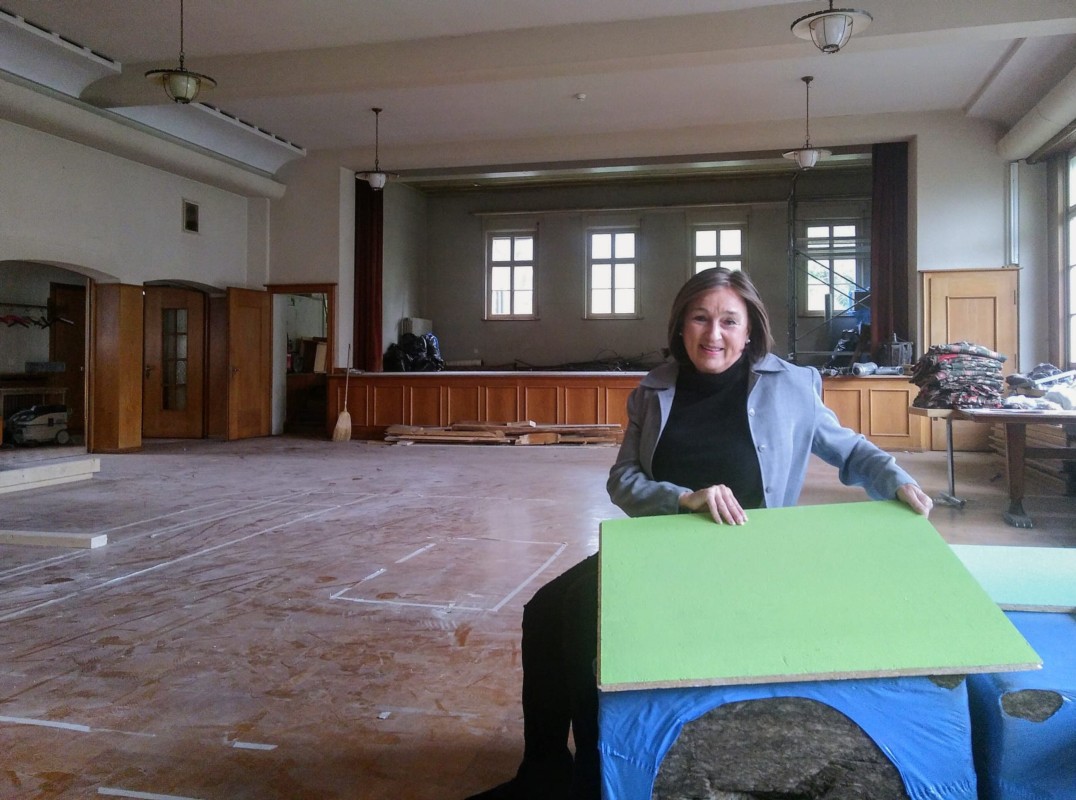 Die Umbauarbeiten im Sternensaal sind im Gange. Erste Einbauten für die Sanitäranlagen stehen schon. Noch sieht der Saal aber nicht so aus, wie man ihn sich dereinst vorstellen muss. „Im Saal gibt es zunächst einen Gruppenraum, eine Küche und Kinder-WCs“, erklärt kibe plus-Geschäftsführerin Yvonne Brahier. Die Saalbühne werde für Garderobe, Büros und einen Schlafraum genutzt.