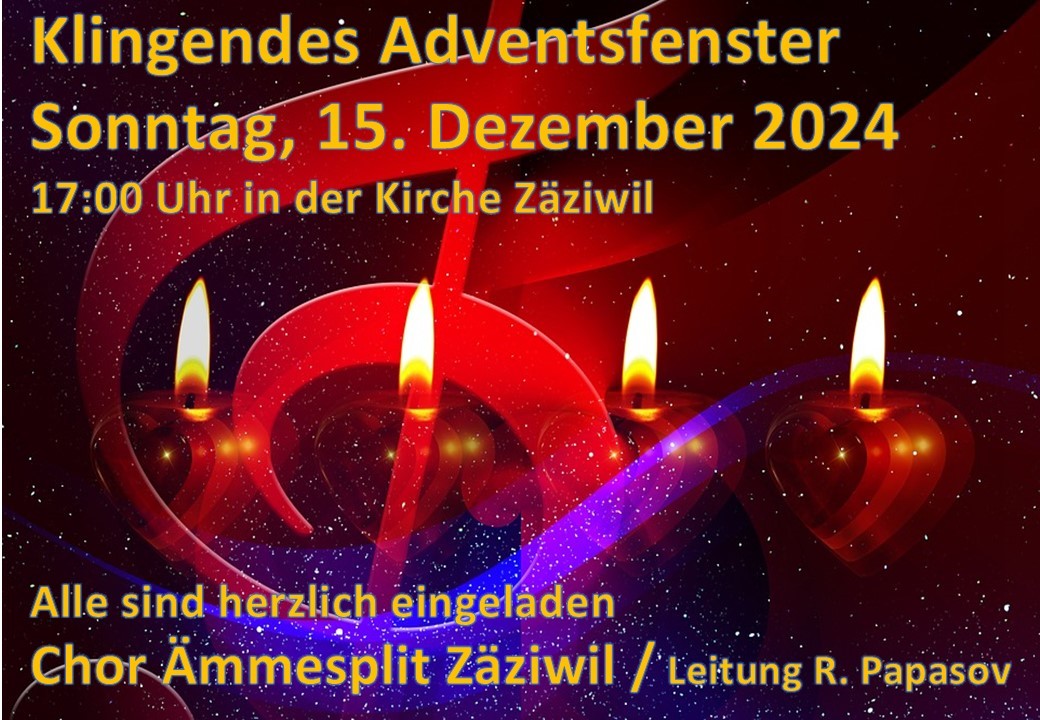 Der Chor Ämmesplit Zäziwil lädt alle zu diesem Adventskonzert ein. Wir möchten Euch die dunkle Jahreszeit mit einigen Gospel- und traditionellen Adventsliedern etwas erhellen.