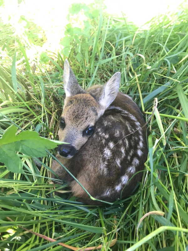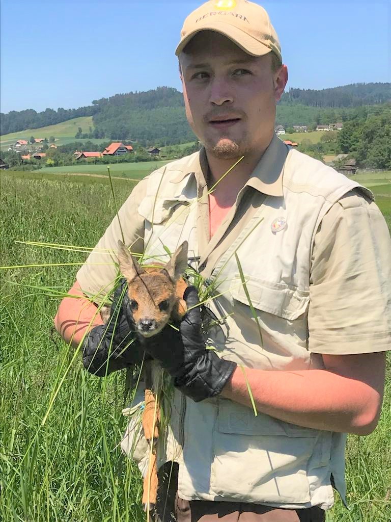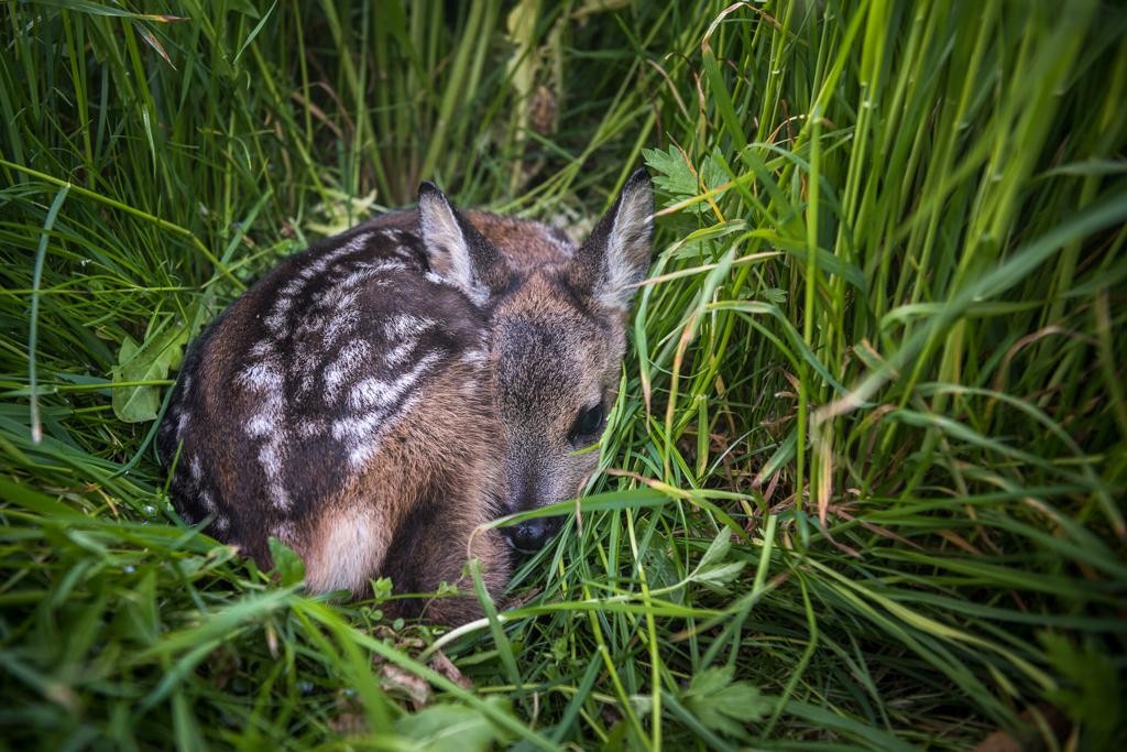 Ausgerechnet wenn die Heuernte ansteht, bringen Rehe ihre Jungen versteckt im hohen Gras zur Welt. Zudem hat ein Kitz praktisch keinen Eigengeruch. In dieser Kombination sind sie für Fressfeinde wie den Fuchs nur mit Mühe aufzuspüren, für den Menschen allerdings ebenso. Aus diesem Grund sterben jedes Jahr tausende junge Rehe in der Schweiz einen grausamen Tod durch die Klingen von Mähmaschinen.