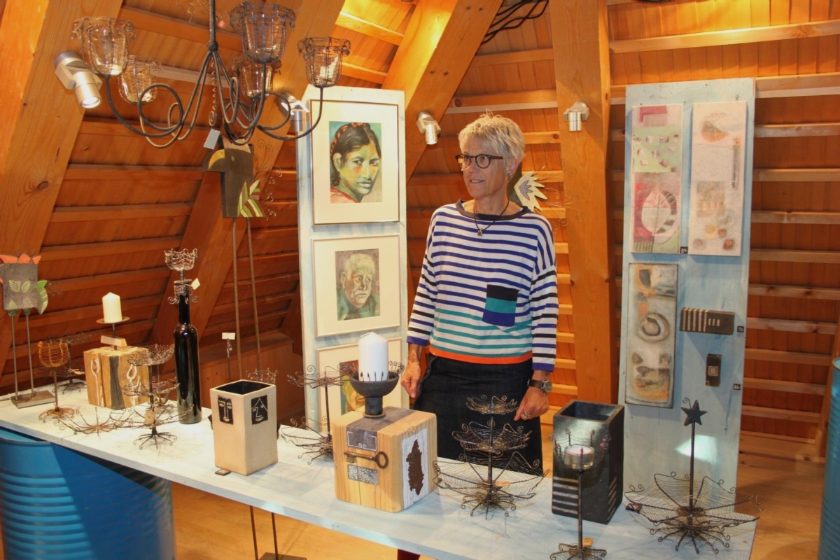 Bilder, Rakku-Skulpturen und Drahtkörbchen in vielen Varianten kreiert Erika Linder. Ihre Kombinationen mit den unterschiedlichsten Gegenständen faszinieren. Selbstgeschöpftes Papier zu Bearbeiten ist die Leidenschaft von Annemarie Rüegsegger. Ob nun als Vase, Sterne, Engel oder geflochtene und gehäkelte "Schnüre", es scheint für sie keine kreativen Grenzen zu geben.