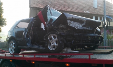 Als sie auf der Burgdorfstrasse weiterfuhren, sahen sie, dass das geflüchtete Fahrzeug verunfallt war. Gemäss ersten Erkenntnissen hatte die Lenkerin auf Grund der Geschwindigkeit die Herrschaft über ihr Fahrzeug verloren und war frontal mit einer Mauer kollidiert.