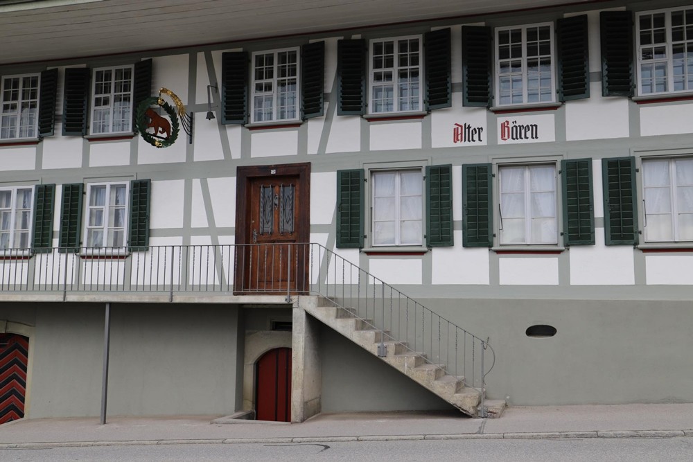 Fast 50 Jahre wird der "Alte Bären" nicht mehr als Wirtshaus genutzt, trotzdem ziert das wunderschöne Hochstudhaus an der Burgdorfstrasse ein Wirtshausschild. Nun wurde das historisch wertvolle Schild anlässlich der Fassadensanierung wieder vollständig restauriert.