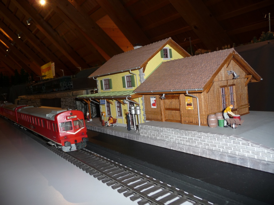 Ob Eisenbahnfans, aktive oder ehemalige Eisenbahner, alle kamen auf ihre Rechnung. Gross und Klein erfreuten sich an den wunderbaren Fahrzeug-Modellen der ehemaligen EBT, SMB, VHB im roten Kleid. Jedes Spur-0-Modell, in unzähligen Stunden detailgetreu von den Mitgliedern der Thuner Eisenbahn Amateuren angefertigt, glänzte auf der wunderschön erstellten Modul-Anlage im Dachstock des Museums.