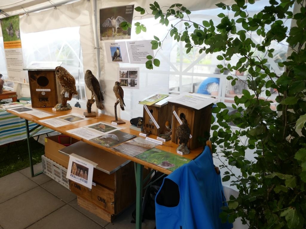 Dabei meint er die freilebenden Vögel der Region. So betreut er mit seinen wenigen OVK-Mitgliedern über 800 Nisthilfen, darunter die grosse Mehlschwalbenkolonie auf dem Hürnberg. "Wir suchen dringend Helfer die uns einmal jährlich helfen, diese zu reinigen", bittet Christian Moser. Einmal ganz nah, als ausgestopfte Präparate konnten sonst auch eher scheue Vögel, mit zu ihnen passenden Nisthilfen, bestaunt werden.