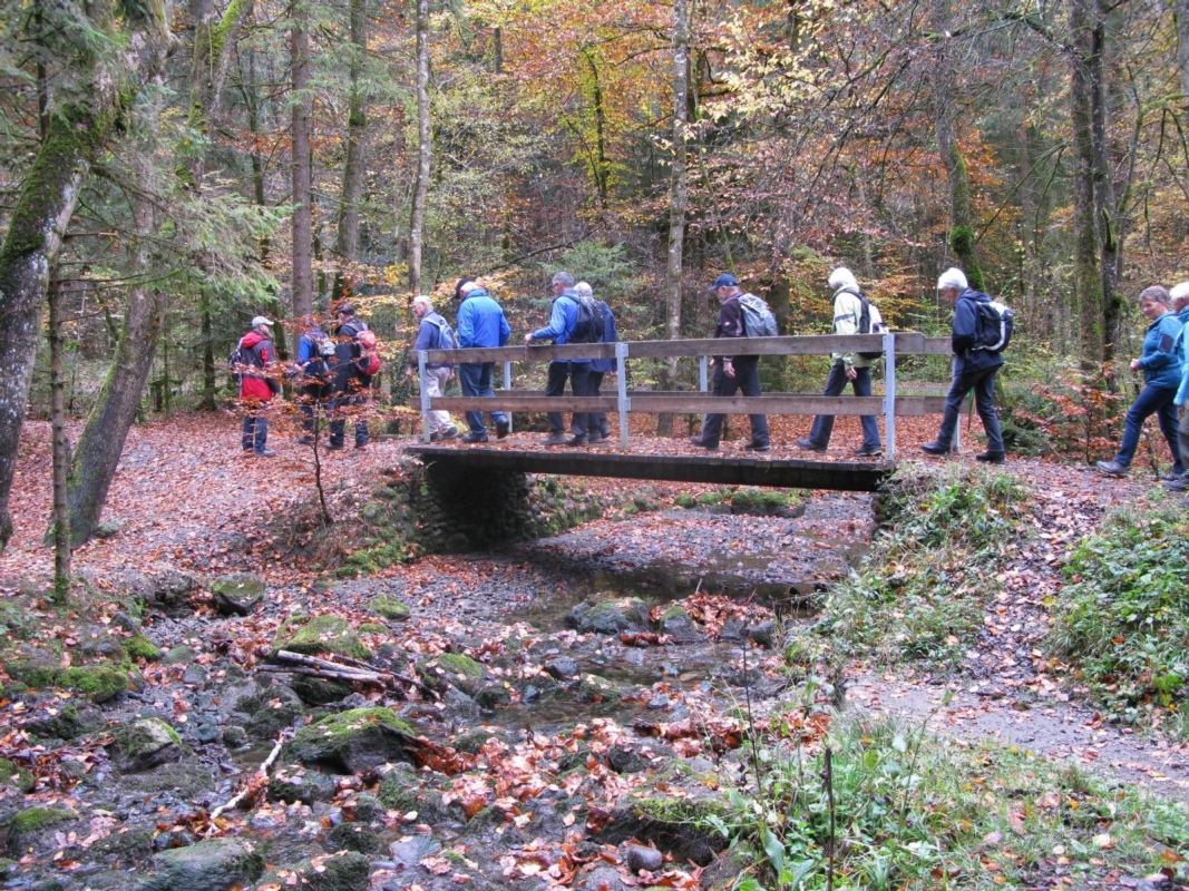 Die Herbstwanderung durch den Verein Zäme Aktiv Region Konolfingen (ZAK) organisiert, belohnte über 20 Teilnehmer mit zur Jahreszeit passender Stimmung. Nach der Bahn- und Busfahrt nach Allmendingen bei Thun starteten die ZAK-Wanderer Richtung Glütschbachtal.