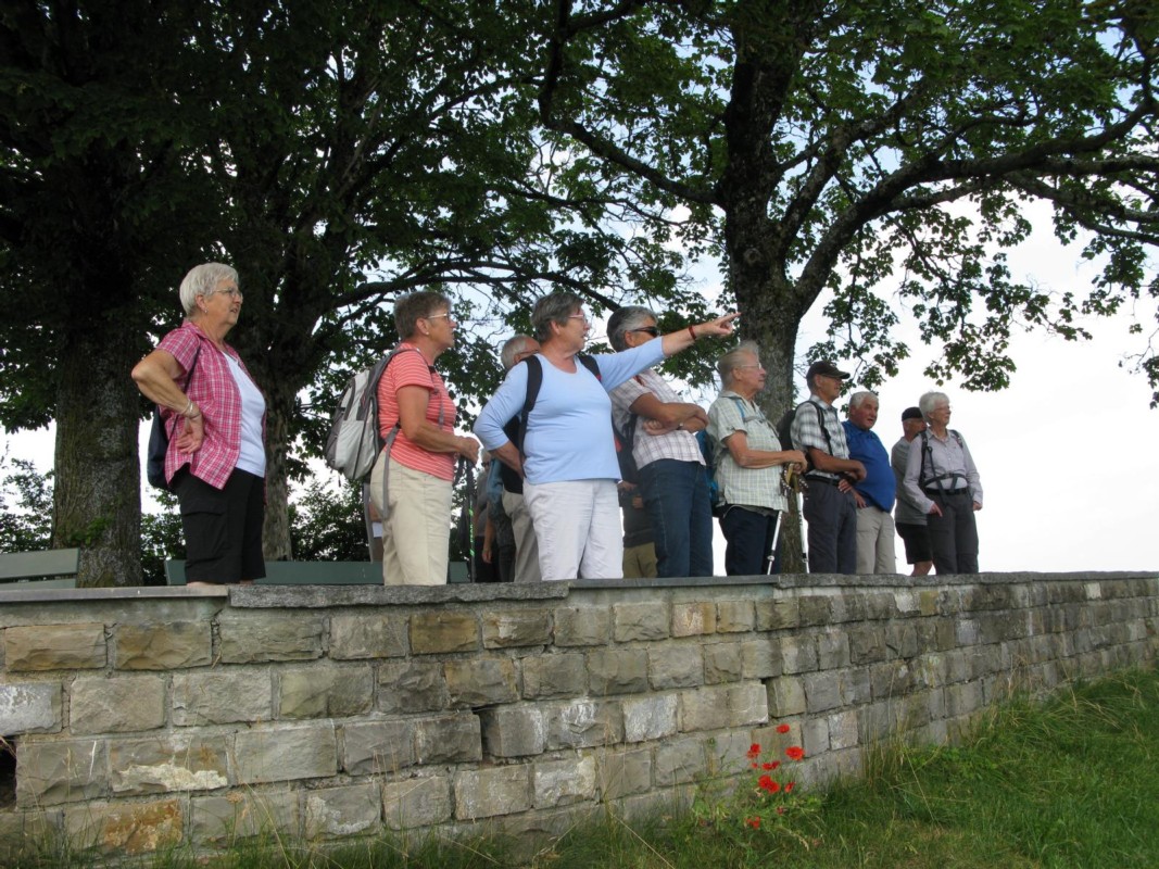 Über den Weiler Leueberg erreichten die Wanderer die Tavel-Gedenkstätte. Trotz etwas Dunst genossen die Wanderer die herrliche Aussicht ins Aaretal und Oberland. Durch den Taanwald ging es nun weiter zum wunderschönen Rastplatz "Brätlistelle Taanwald". Sogar das "Ritiplampi" wurde aktiviert. Frisch gestärkt mit dem obligaten Zvieri ging es dann weiter über Mättwil, Haselmatt. Wunderbare, stattliche Bauernhöfe und die liebliche Gegend durfte genossen werden. "Auf dieser Wanderung erinnerte ich mich an den Text "Herrgott, hesch du d’Wäut schön gmacht" aus dem Jodellied "Bärgandacht"", freute sich Hansruedi Gammenthaler.