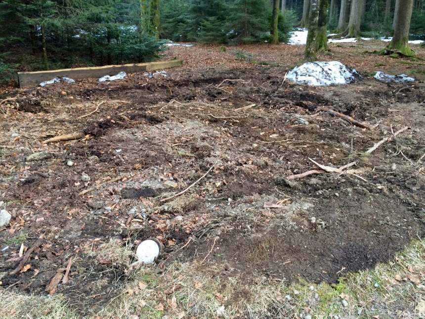 BERN-OST Leser Urs Baumer beliess es nicht beim Reklamieren. Er hat bei der Polizei eine Meldung gemacht. Grund dafür ist ein Farbkübel. "Das Gelände unter der abgerissenen Baracke wurde ausgeebnet und ein Farb- bzw. Lackkessel wurde einfach vergraben! Der Lack war noch flüssig", schrieb er in einem Mail an BERN-OST. Bei der Baracke handelte es sich um einen Materialschuppen des Staatsforstbetriebs (SFB).