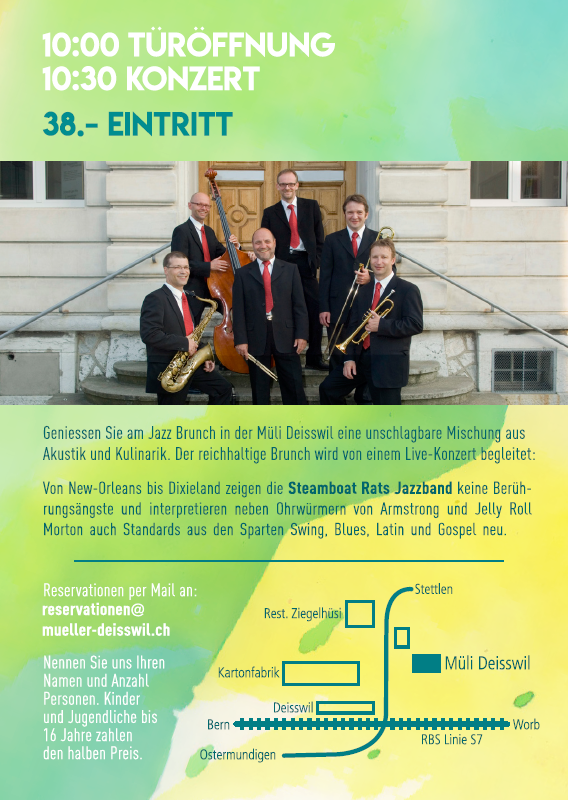 Geniessen Sie am Jazz Brunch in der Müli Deisswil eine unschlagbare Mischung aus Akustik und Kulinarik. Der reichhaltige Brunch wird von einem Live-Konzert begleitet:
