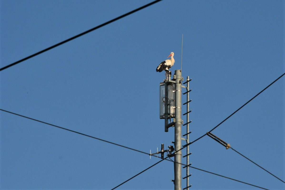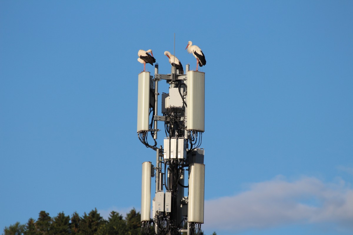 Die Störche suchten sich eine spezielle Absteige aus. Sie übernachteten auf einer 5G-Antenne. Am nächsten Tag wählten sie jedoch eine neue Bleibe.