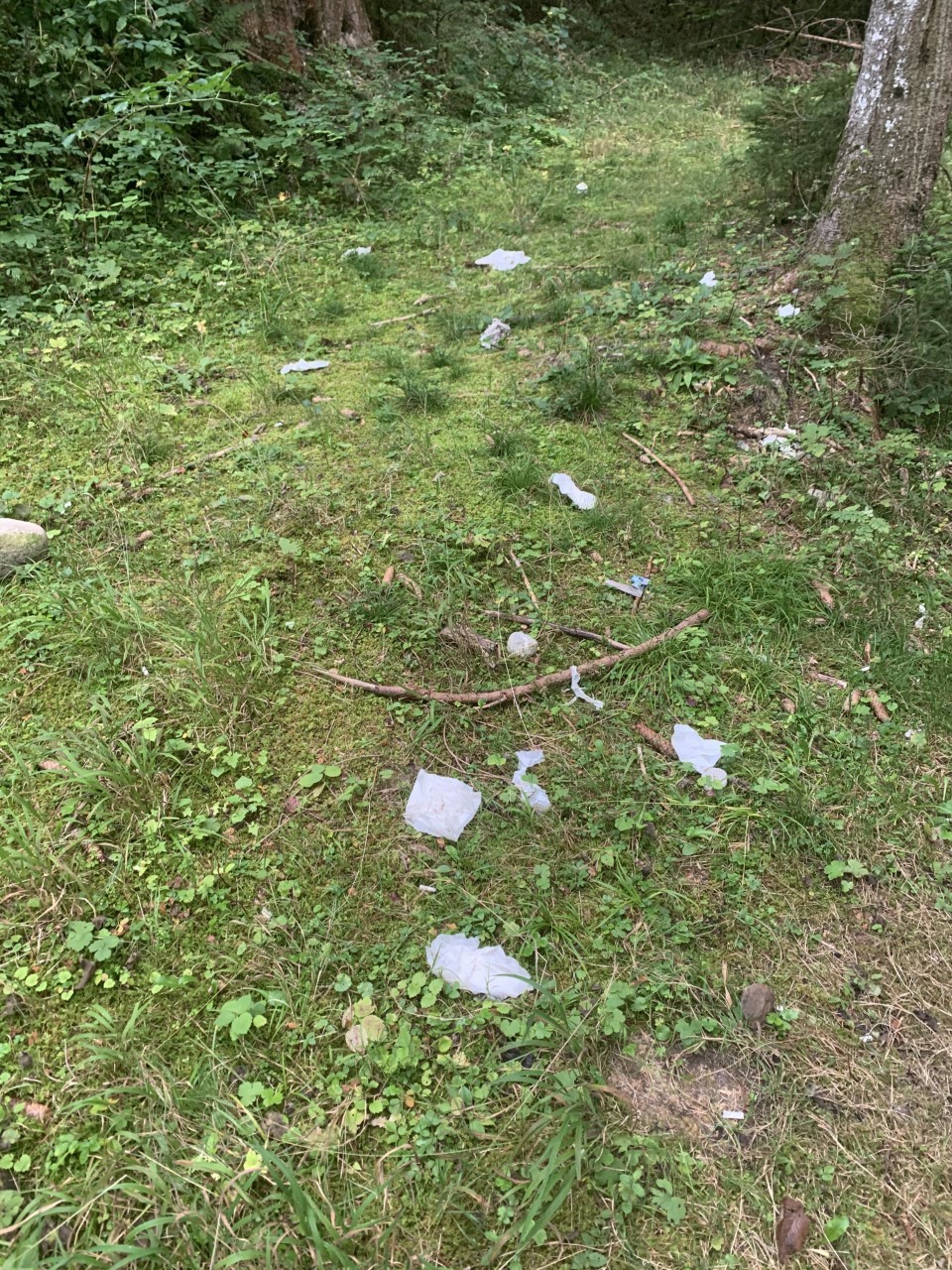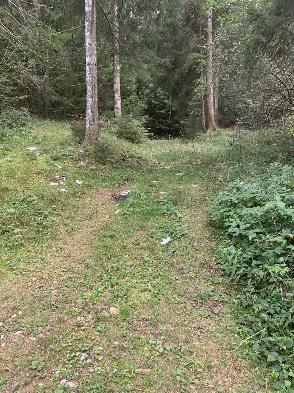 Es war ein Spaziergänger, der sich bei BERN-OST meldete und Bilder schickte von der verdreckten Ecke im Landiswiler Staatswald. Wo bis vor rund einem Jahr der Unteroffiziersverein für Ordnung gesorgt hatte, liege nach dem Abriss der Vereinshütte nun regelmässig Abfall herum. Besonders schlimm sei es während des Lockdowns im Frühling gewesen. Der Anrufer vermutet Parties und wildes Campieren. "Ich habe auch schon Damenstrümpfe, Unterwäsche und Kondome gefunden."