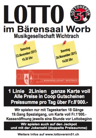 Lotto der Musikgesellschaft Wichtrach im Bärensaal Worb