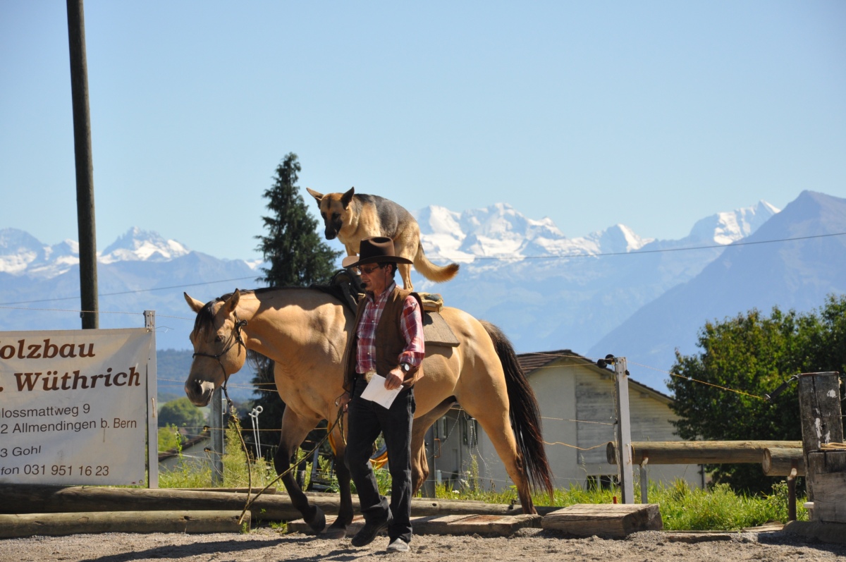 Hans Schmutz ist Besitzer der Magic-Vision-Ranch beim Belpstrassen-Kreisel in Rubigen. Hier lebt er täglich sein Motto: „Für Tierschutz und einen artgerechten Umgang mit Pferden.“ Auf seiner amerikanisch angehauchten Ranch spürt man auch seinen Hang zu Südfrankreich: Das Gelände vor dem Haus heisst Petite Provence, mit Place de lÂpéro und Place de la Pétanque. Der im Elsass geborene mit Heimatort Worb ist gelernter Elektromechaniker und hatte quasi genetisch einen Hang zum Pferd, sein Vater war Karrer: „Mit zehn Jahren hatte ich mein erstes Pferd, das ein Esel war.“