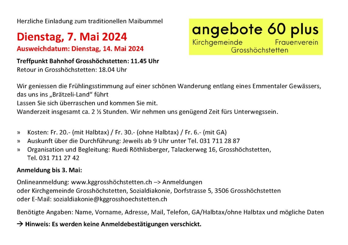 Maibummel - angebote 60 plus