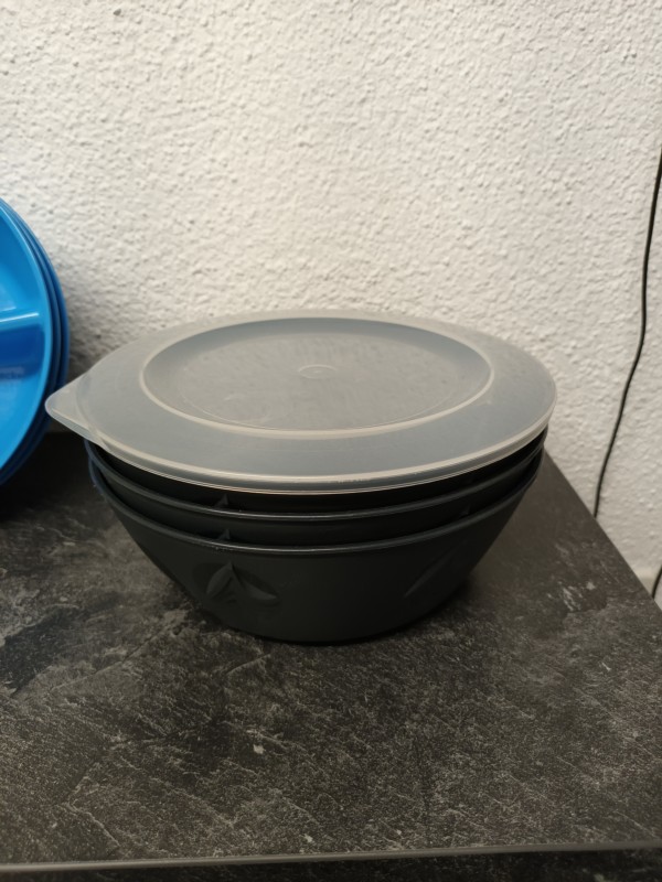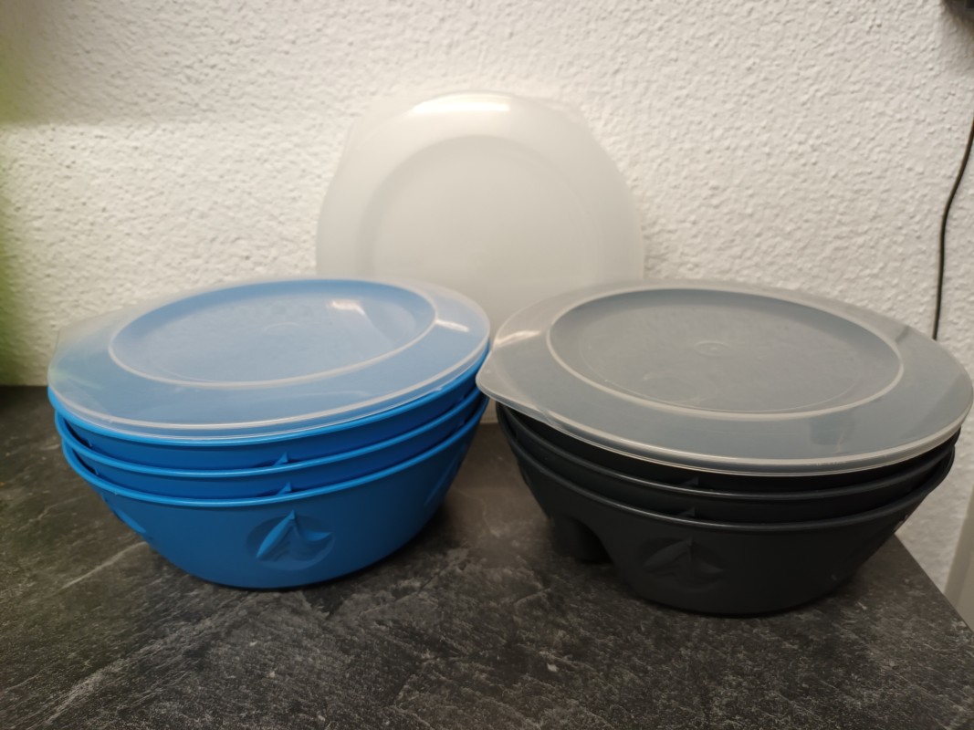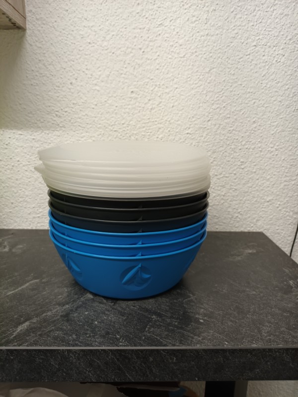 Mehrwegschalen, geteilt, mit Deckel, 3 Stück blau, 3 Stück schwarz
