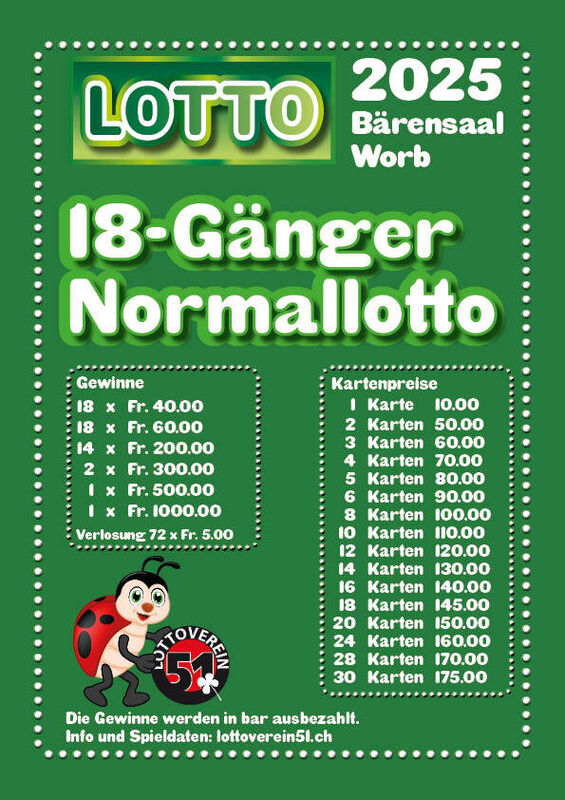 Aktueller Jackpot unter www.lottoverein51.ch