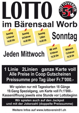 Mehr Infos unter www.lottoverein51.ch