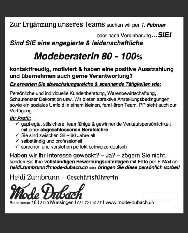 Mode DUBACH Bernstrasse 18 3110 Münsingen 031 721 10 27 Homepage