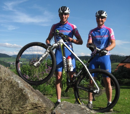 Mountainbike fahren ist die Leidenschaft der beiden Männer aus der Region Bern-Ost. "Seit ich gehen kann, fahre ich Mountainbike", schreibt Remo Wegmüller über sich selber auf seiner Website. Er arbeitet als Mechaniker, nebenbei ist er Hausmann und Sportler. Rafael Meier ist Sportlehrer und auch nebenberuflich viel auf dem Bike anzutreffen.