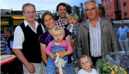 Obschon die erfolgreiche Sportlerin und Mutter dreier kleiner Kinder nicht besonders viel Zeit zum Sitzen haben dürfte, überreichten ihr Gemeindepräsident Erich Feller und Parlamentspräsident Erich Bolliger eine Gartenbank – vorerst in Form eines Gutscheins.