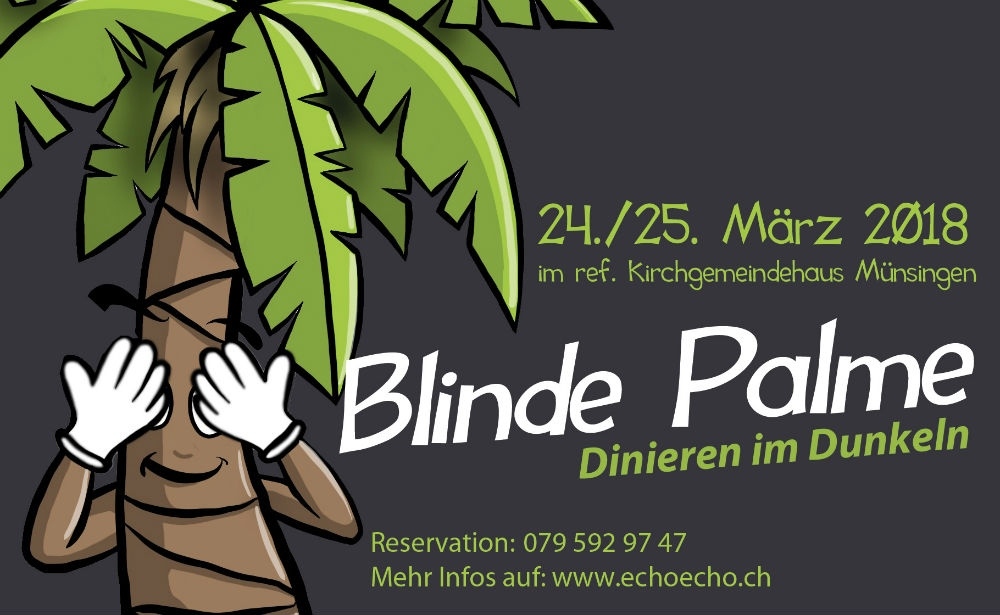 "Blinde Palme" heisst das Projekt der ökumenischen Jugendarbeit "echo" aus Münsingen, welches am 24. und 25. März zu einem kulinarischen Erlebnis besonderer Art einlädt. Organisiert wird der Anlass von sieben 13- bis 16-jährigen "echo"-Jugendlichen, sechs blinde oder sehbehinderte Personen bewirten die Gäste im abgedunkelten Kirchgemeindehaus.