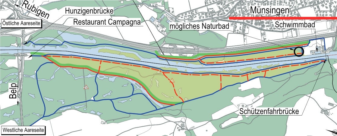 Der Aareabschnitt zwischen Münsingen und Belp gehört mit zum Schönsten, was die Region zu bieten hat. Auenwald, Kiesbänke und kleine Nebenflüsschen laden ein zum Entdecken und werden von Hündelern ebenso geschätzt wie von Joggerinnen und Wasserratten. Nun soll in Münsingen mit einem Aarebad eine weitere Attraktion dazu kommen.