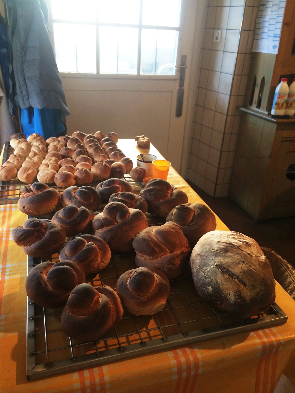 Eine erste Idee haben die Beiden mit dem Batzen-Brot jedoch bereits umgesetzt. In unregelmässigen Abständen stellen sie im Ofenhüsi Züpfe, Tübeli und Brot her. Bis zu 10 Kilogramm an einem Tag. „Ich mag es, nach dem Tempo des Holzofens zu arbeiten. Dazu kommt die ganze Teigerei“, erzählt Rutishauser, der das Brotbacken als grosses Hobby und Riesenlust bezeichnet, begeistert.