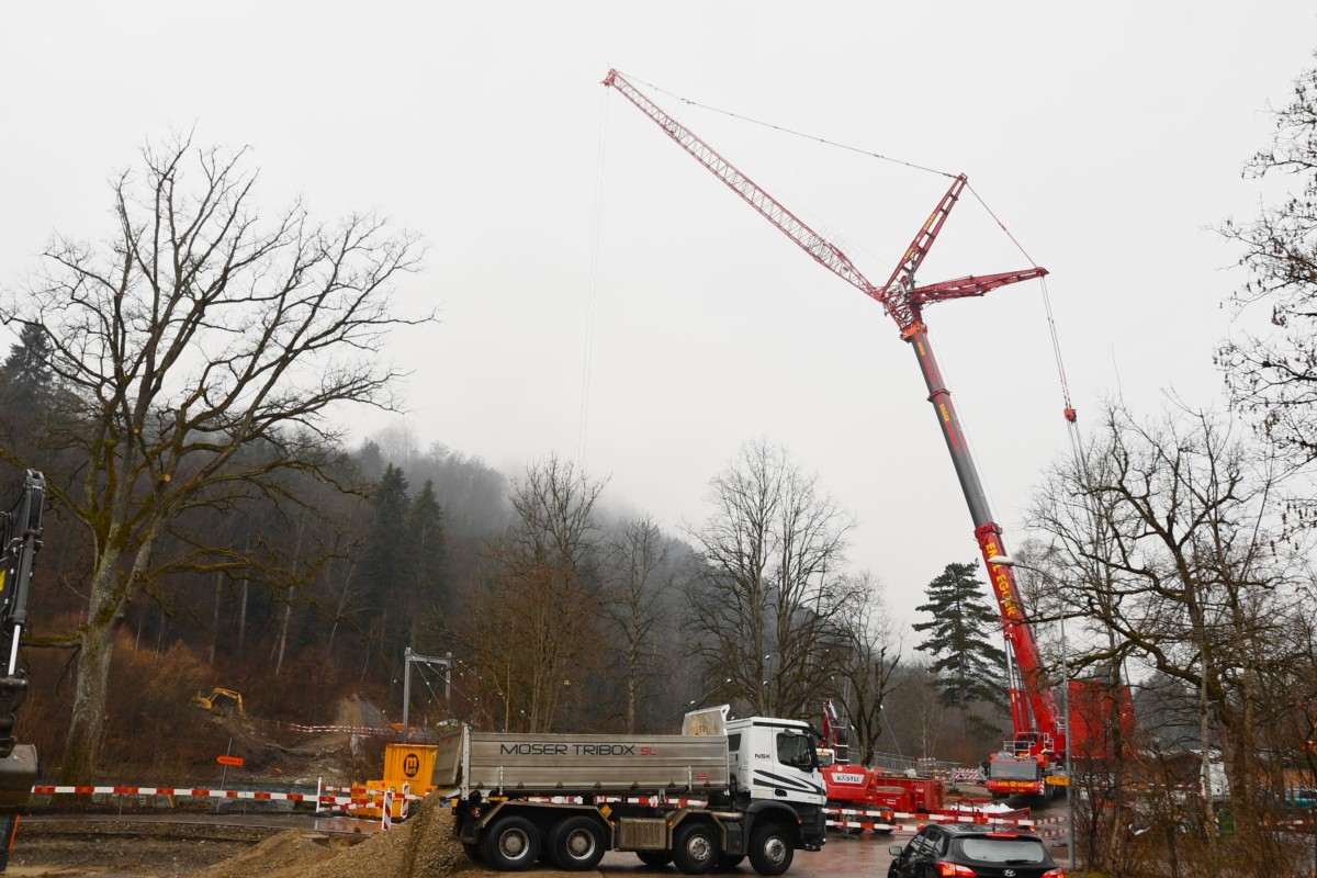 Nachdem die neu gebaute Schützenfahrbrücke für kurze Zeit geöffnet war, wurde in den vergangenen Tagen die 140-jährige Brücke abgebaut. Mit einem massiven Kran wurde die Brücke Stück für Stück demontiert. Ab Samstag, 15. Februar kann die neue Brücke wieder befahren werden. Wie die Gemeinde Münsingen mitteilt, muss wegen der noch laufenden Arbeiten immer wieder mit Sperrungen gerechnet werden.