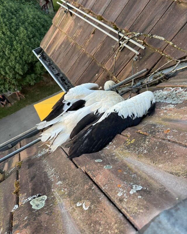 Ein ungewöhnlicher Rettungseinsatz beschäftigte am Dienstag die Feuerwehr Münsingen: Auf einem Hausdach war ein Storch eingeklemmt – und brauchte dringend Hilfe.
