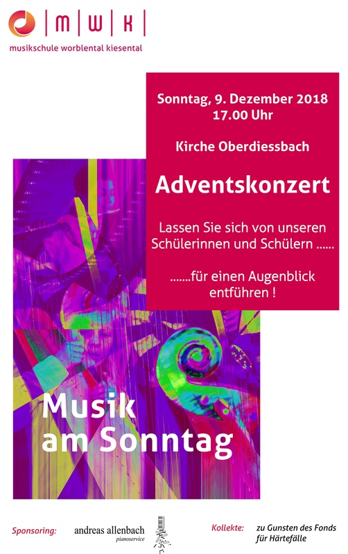 Herzlich Willkommen zu unserem Adventskonzert. Lassen Sie sich von unseren Schülerinnen und Schülern mit Musik auf den Advent einstimmen.