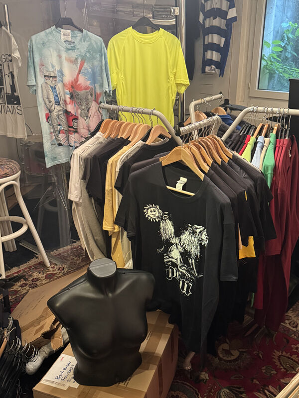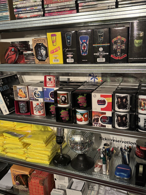 T-Shirts, Polos, Jacken, Dekomaterial, CDs, LPs, el. Schlagzeug, Pullover, CD Ständer, grosse Blumentöpfe und Hunderte andere interessanten Sachen...!!!
