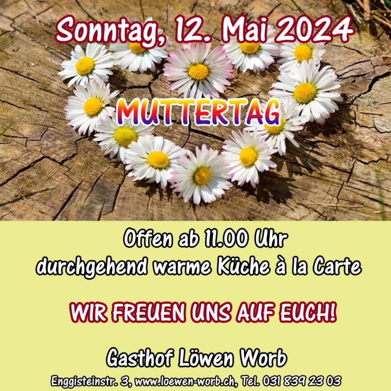 Zu Ehren der Mütter haben wir am Sonntag, 12. Mai ab 11.00 Uhr durchgehend mit warmer Küche geöffnet. Lasst Euch von unserem Team verwöhnen! Wir freuen uns auf Euch!