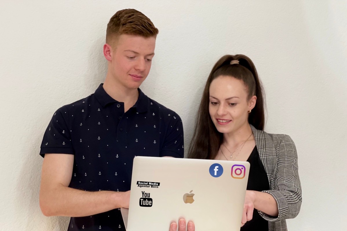 Die Geschwister Gian-Luca und Livia Leuenberger sind jung und haben zusammen die "Social Media Agentur Bern" gegründet. Der Name soll unmissverständlich zeigen, was ihr Unternehmen anbietet, sagt Gian-Luca Leuenberger. Zudem seien sie beide waschechte Berner. Livia führt nebenbei noch eine andere Firma, Gian-Luca leistet zurzeit seinen Zivildienst.
