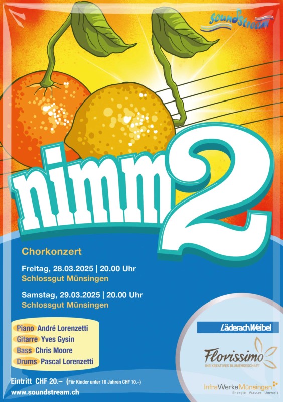 Der Chor SoundStream präsentiert mit Band und reinen Klängen das neue Programm "Nimm2". Lasst euch überraschen...