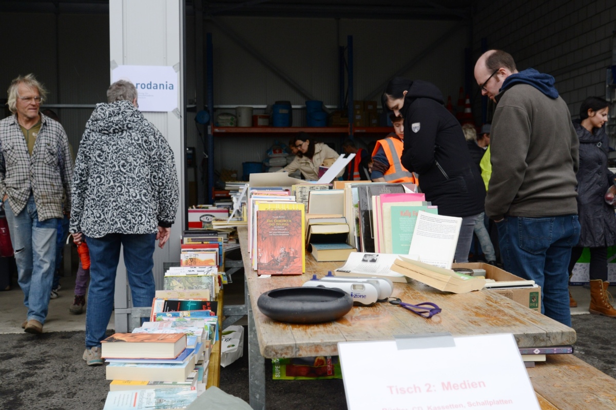 „Auf der Jagd“ schauten die einen einfach Mal und erbeuteten zum Beispiel ein paar Bücher oder gebrauchte Gesellschaftsspiele. Andere hielten gezielt nach etwas Ausschau. „Wir sind gekommen um uns nach Geschirr umzusehen“, erklärt eine Oberdiessbacherin. Gebracht habe sie ihrerseits am Morgen ein Katzenkistli, das übrigens jetzt schon weg sei.